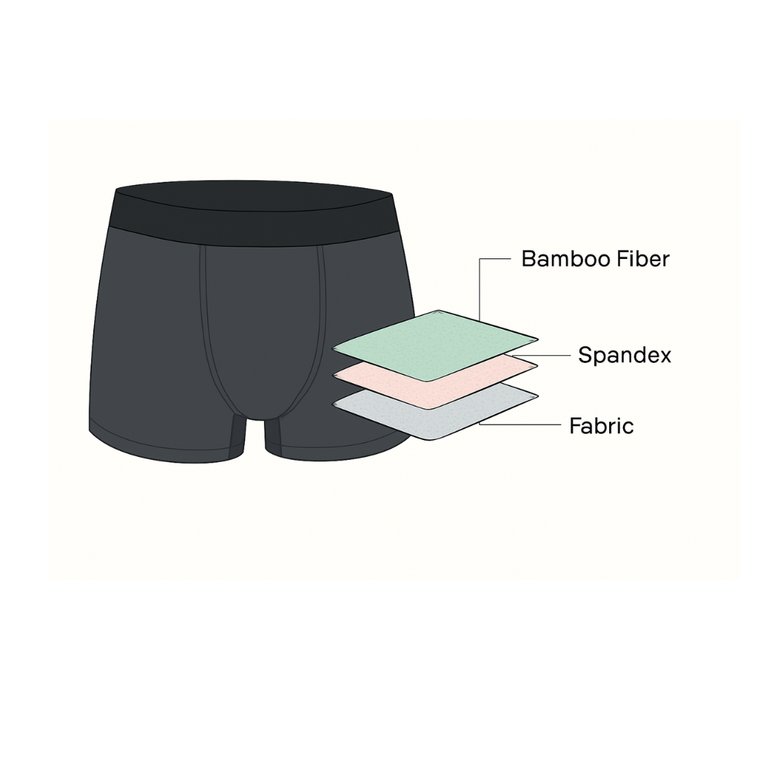 95 % bambou, 5 % spandex, pour un boxer ultra-doux, respirant, anti-odeurs et flexible, qui suit chacun de tes mouvements, sans jamais se déformer.